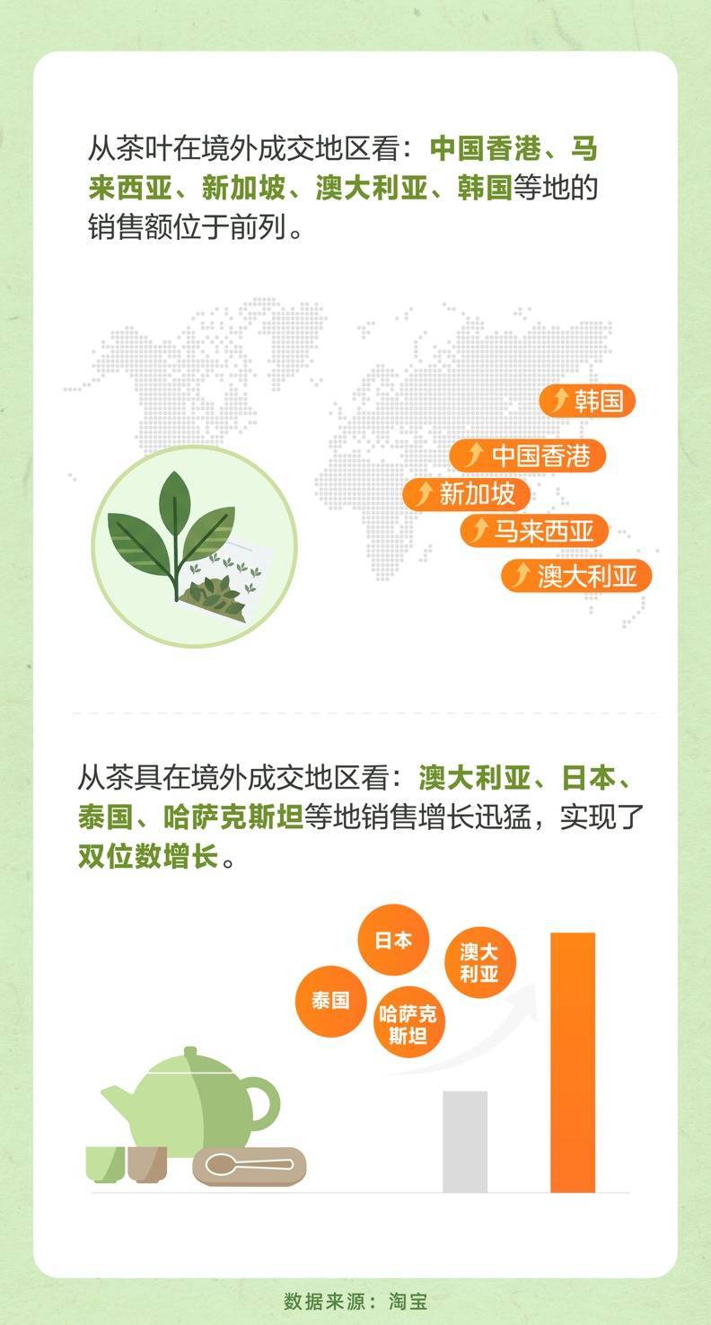 去年12月,淘宝正式在境外站点放开食品类目销售,首批开放品类就包括茶、休闲食品和乳饮冲调。据了解目前已有超3万个茶类目商家通过淘宝向境外销售,商品量接近350万。其中既有如龙井、普洱等传统茶叶类商品,也有奶茶茶包、茶粉等新茶饮。